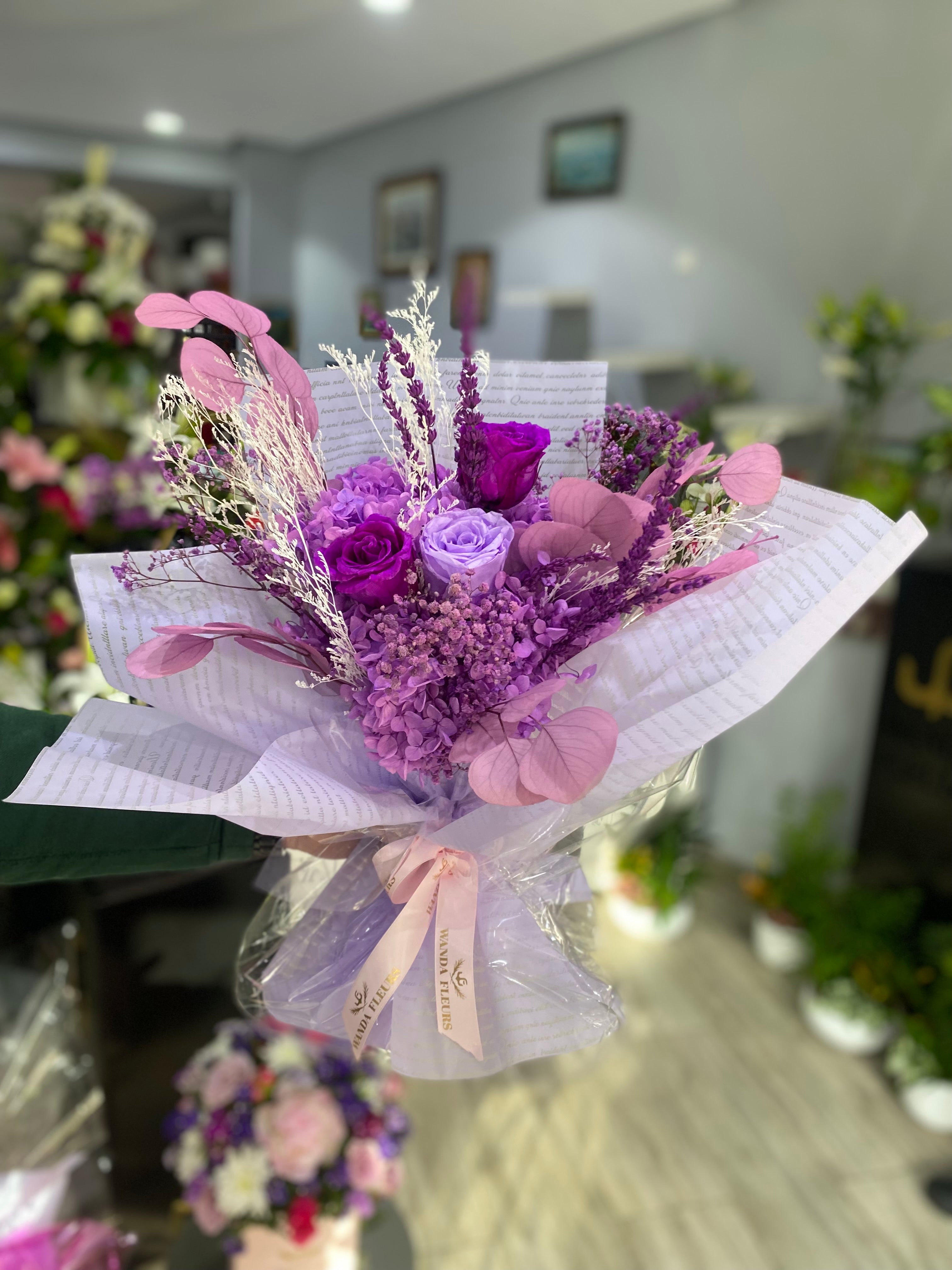 Nos bouquet de fleurs sont emballés avec soin dans des Boite sur mesures pour ne pas abimer les fleurs.