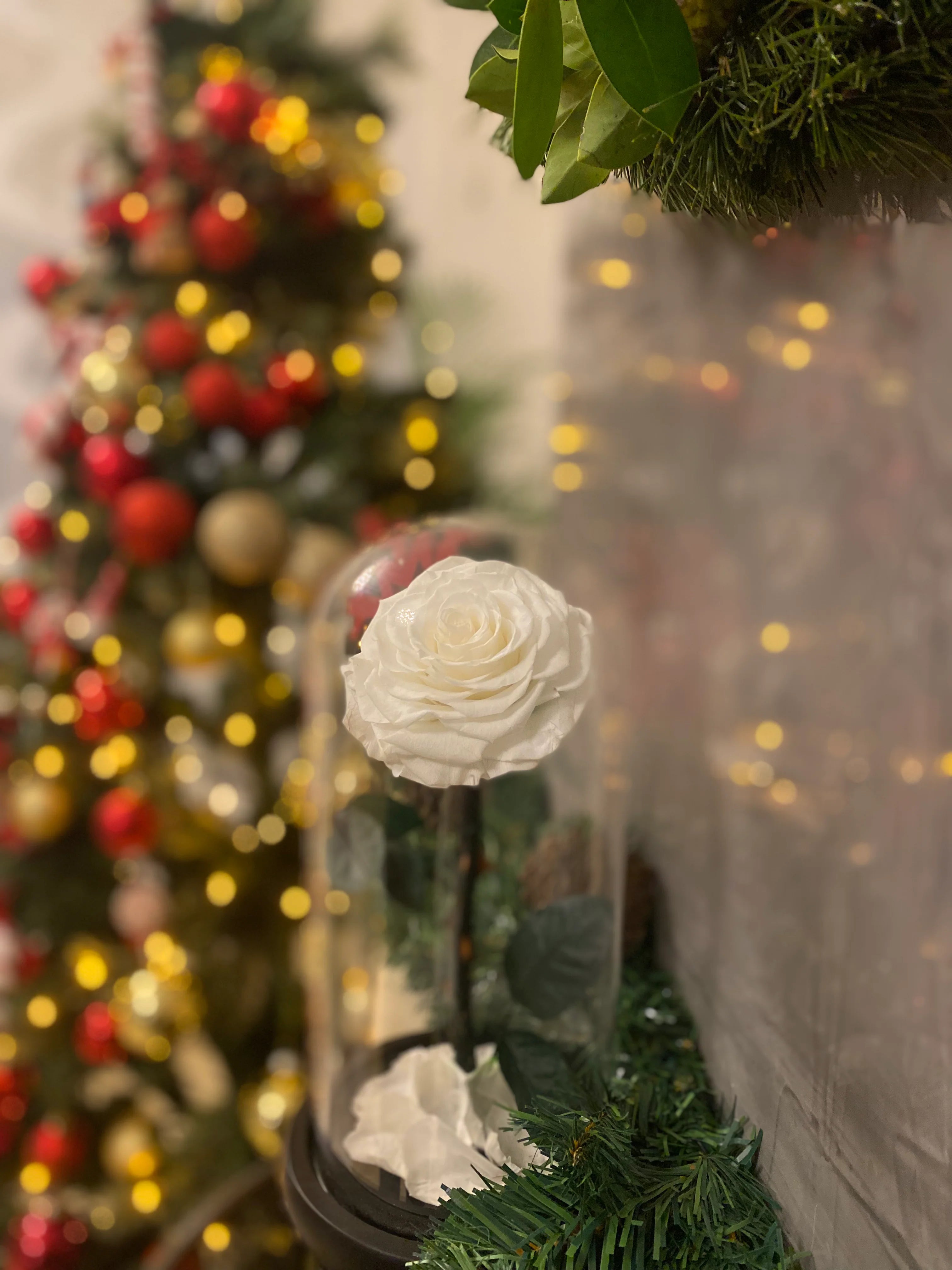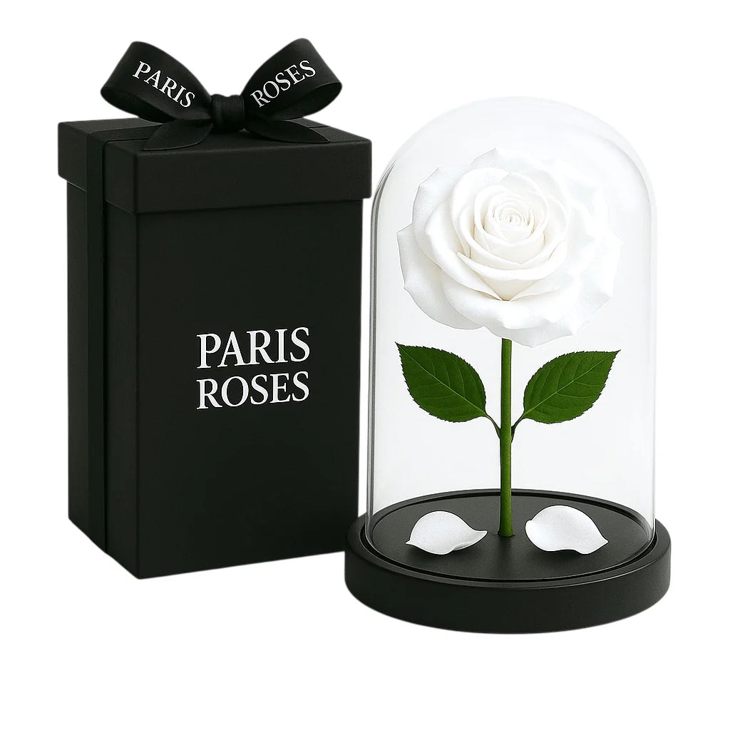 Roses eternelle blanche sous cloche XL